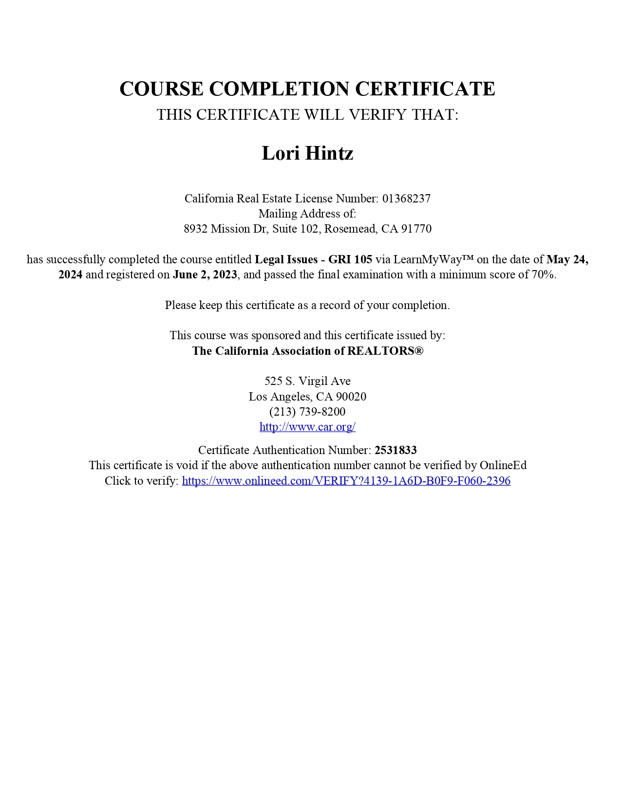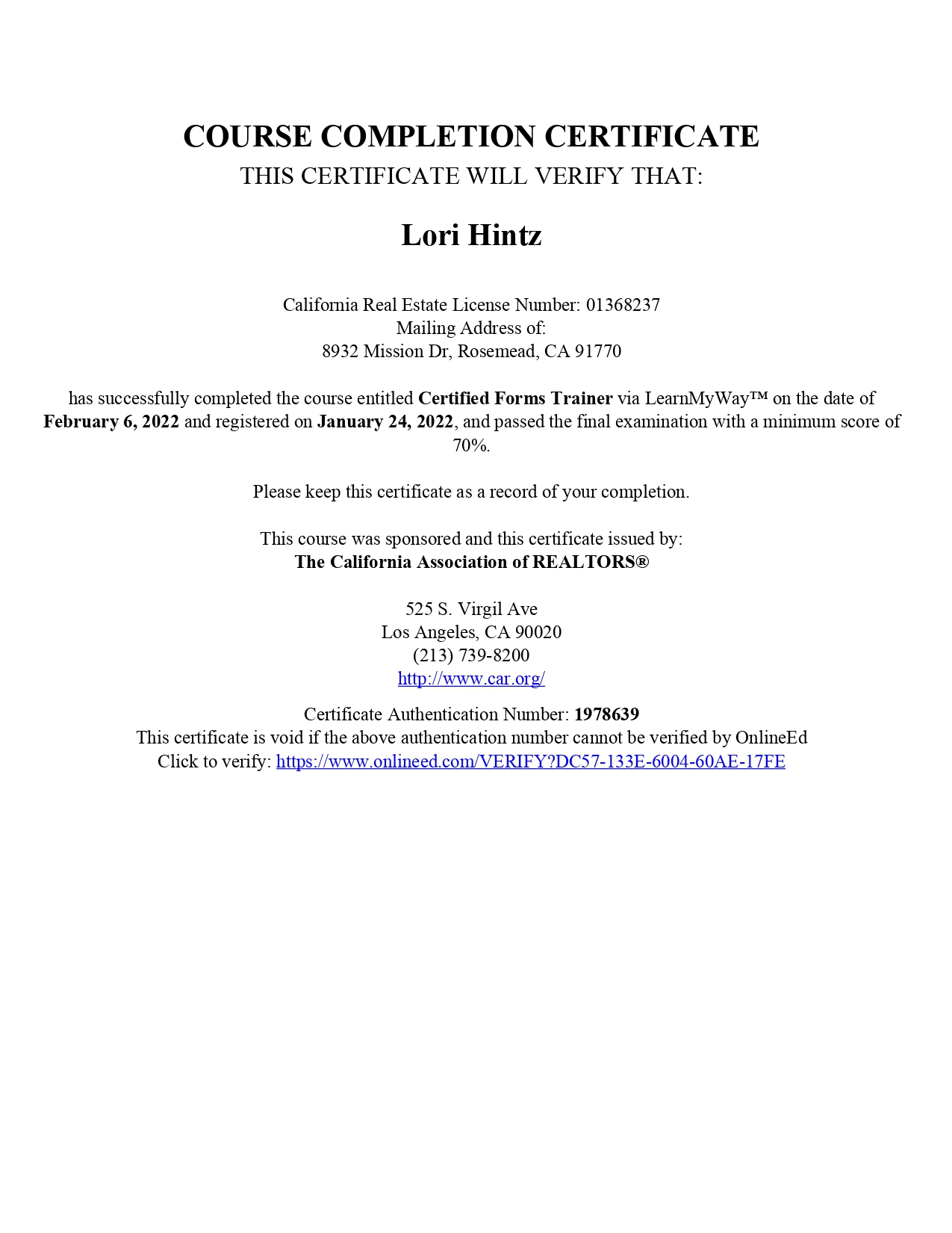 As the Designated Broker-Officer of Partner Real Estate, Lori Hintz holds a vital leadership role with legal and supervisory responsibilities. She is the designated corporate officer responsible for overseeing and controlling all activities that require a real estate license, conducted on behalf of the corporation by its officers and employees. Lori works in close communication with Partner Real Estate’s corporate legal counsel to ensure compliance, ethical standards, and best practices across all transactions. A passionate advocate for lifelong learning, Lori actively invests in her continuing education. She has completed the California Association of REALTORS® C.A.R. Certified Forms Trainer Course, RPA & Addenda Module, an elite “train-the-trainer” program led by C.A.R. Legal staff. This certification enables Lori to teach the most current and accurate usage of California’s Residential Purchase Agreement (RPA-CA) and its related forms. She now leads weekly contracts training exclusively for Partner Real Estate associates and provides one-on-one coaching to agents on using key forms such as the RPA, Buyer’s Inspection Advisory, Requests for Repairs, Contingency Removal, Notice to Perform documents, and more. Her guidance helps agents confidently prepare, present, and respond to offers with clarity and legal accuracy.