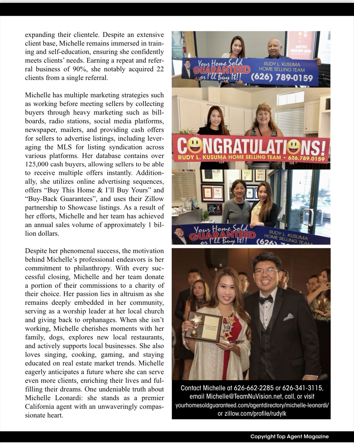 Michelle Leonardi is a trusted real estate professional at Partner Real Estate, known for her deep market knowledge, integrity, and dedication to delivering results. With years of experience in sales and marketing, Michelle has built a reputation as a local expert and global connector, helping clients across Los Angeles County, Orange County, and the San Gabriel Valley — including La Mirada, Arcadia, Pasadena, Diamond Bar, Rowland Heights, West Covina, San Gabriel, Whittier, and beyond.