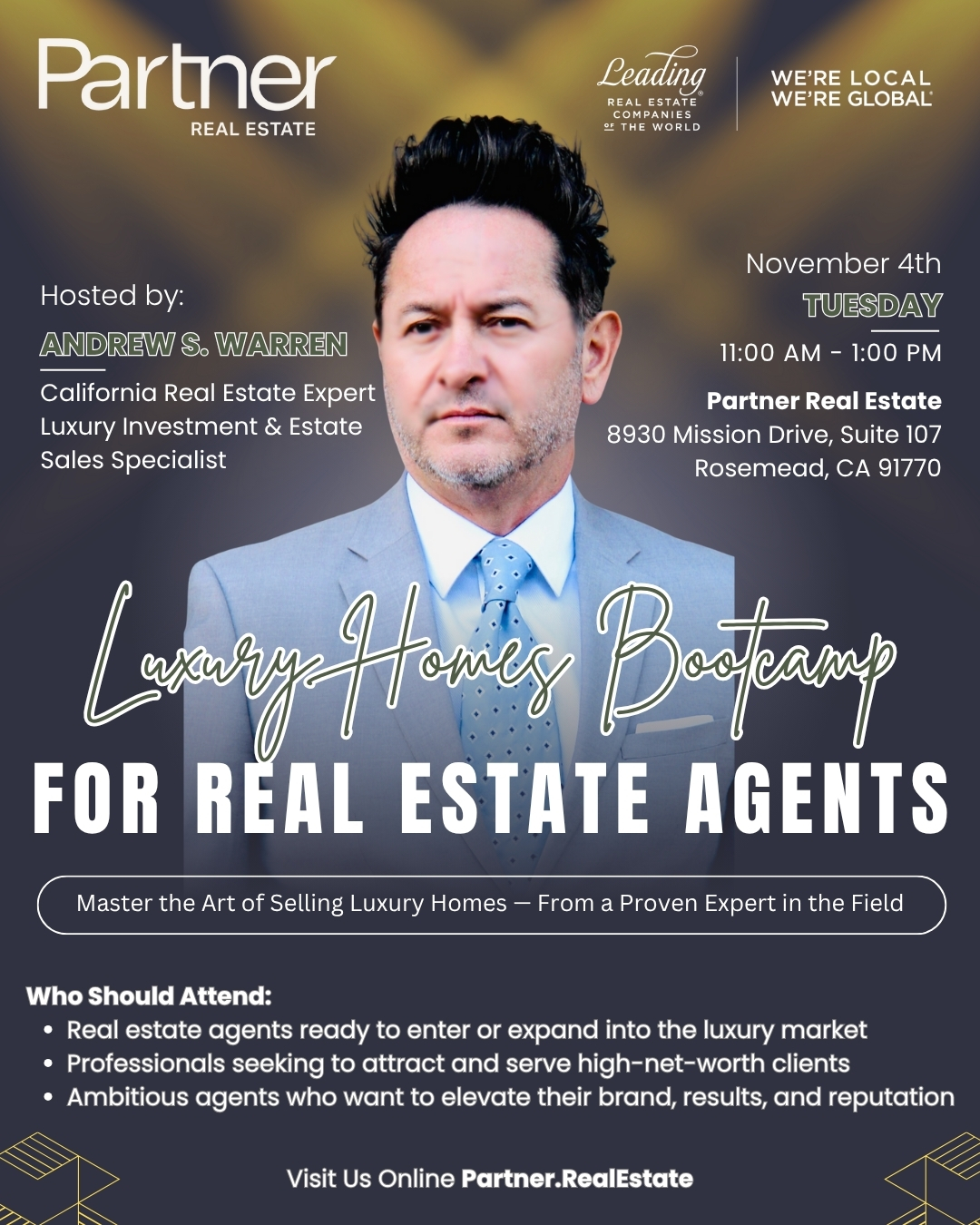 Join us for the Luxury Homes Bootcamp for Real Estate Agents, hosted by Andrew S. Warren, California Real Estate Expert and Luxury Investment & Estate Sales Specialist.