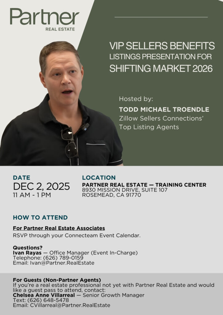 Led by Todd Michael Troendle, one of Zillow Sellers Connections’ top listing agents, this high-impact session will walk you through the entire Partner Real Estate Listing Presentation — live and unfiltered.