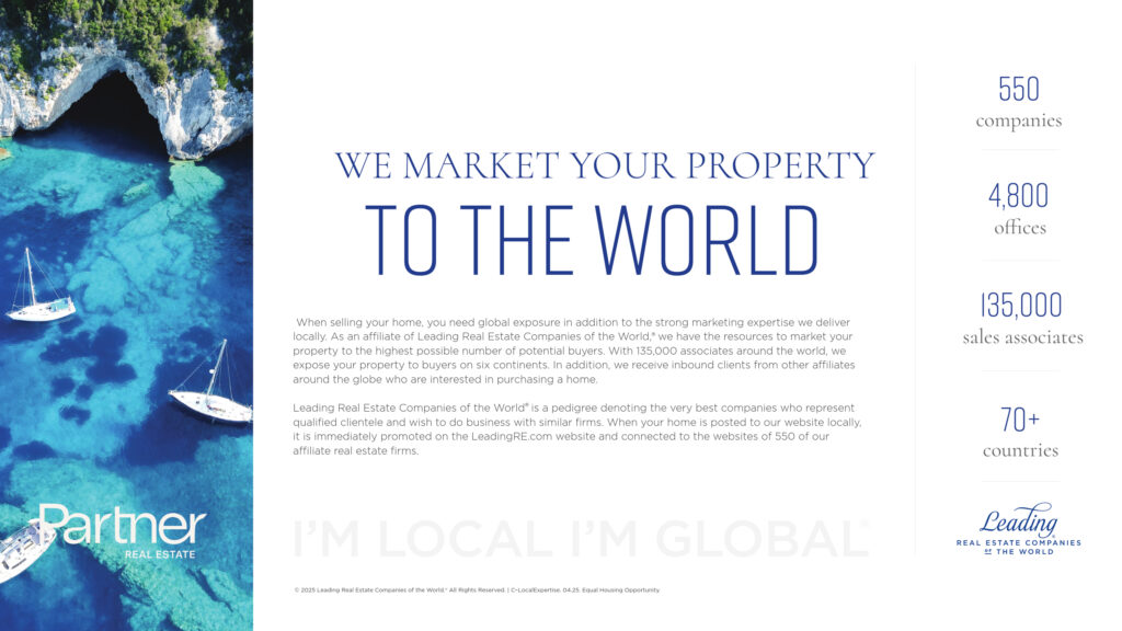 “At Partner Real Estate, our mission has always been to empower our agents and elevate the client experience. By expanding our network globally through Leading Real Estate Companies of the World®, we’re taking that vision to the next level — opening doors for our associates to grow their business worldwide and giving our clients access to trusted real estate professionals and opportunities across the globe.”