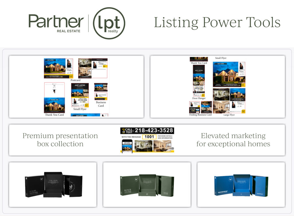 Every Partner Real Estate agent — brokered by LPT Realty — receives access to a Listing Power Tools box for each and every listing.